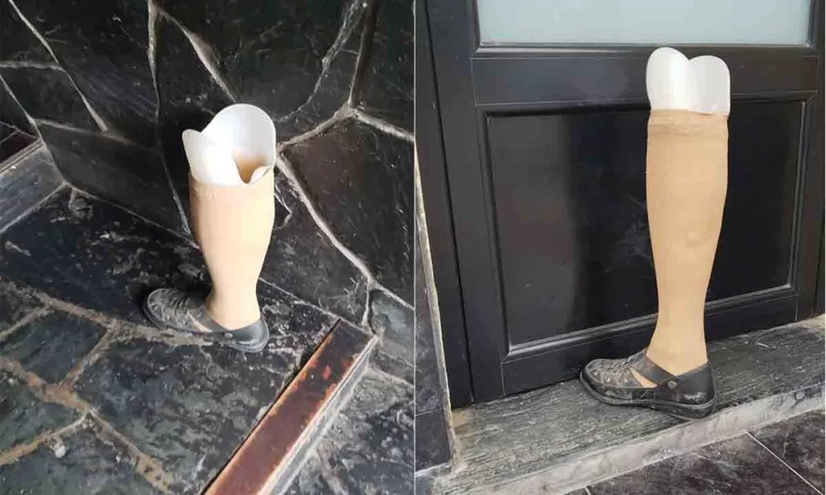 La ciudad de Bahía Blanca amaneció sorprendida por la aparición de un extraño objeto en la puerta de un salón de fiestas. Se trata de una pierna ortopédica, que quedó abandonada aparentemente por una mujer, con una sandalia en el pie.