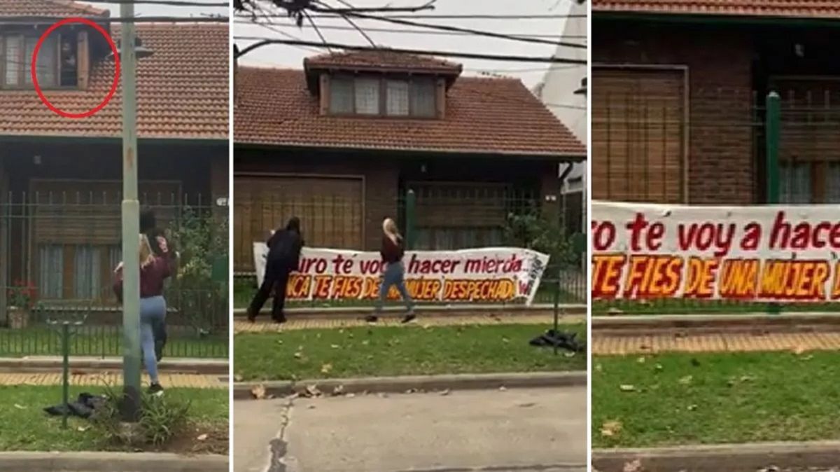 Las mujeres lanzaron insultos y arrojaron objetos hacia la vivienda en una escena cargada de tensión y furia. Aunque “Mauro” se limitó a asomarse por la ventana, las mujeres no se detuvieron ahí, decididas a dejar una advertencia contundente. Colgaron una bandera en la reja de la casa, en la que se leía un mensaje directo y amenazante: “Mauro, te voy a hacer m... Nunca te fíes de una mujer despechada”.