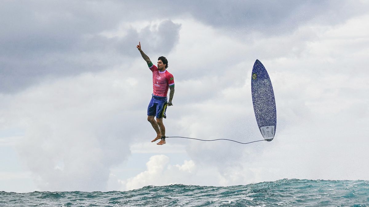 El surfista fue capturado durante los cuartos de final del Shortboard masculino en los que en su segundo intento completó un movimiento que le valió una puntuación de 9,90 puntos, estableciendo un nuevo récord olímpico y derrotando a su rival japonés. Se ve que, al saber que acababa de alcanzar cifras récord, el surfista levantó el dedo, indicando al cielo en señal de su victoria, mientras que la tabla a su lado parece permanecer flotada. "No fue difícil tomar la foto", afirmó Brouillet, agregando que se trataba más bien de "anticipar el momento".