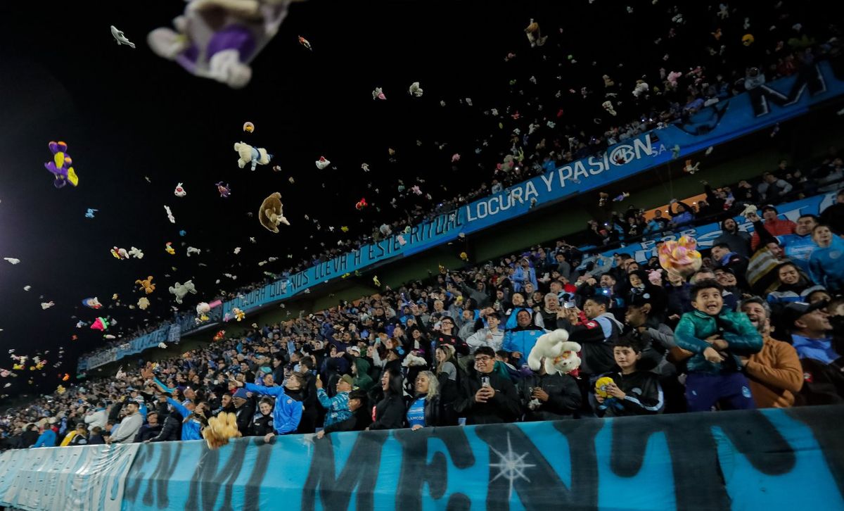 Los hinchas hicieron una lluvia de ositos de peluche por parte de los hinchas del Pirata, que organizaron una campaña por el Día de la Niñez.