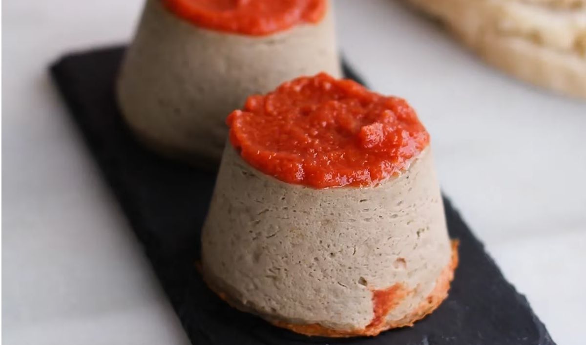 - Cubrir 6 platillos con la salsa roja, desmoldar los soufflés y servir.