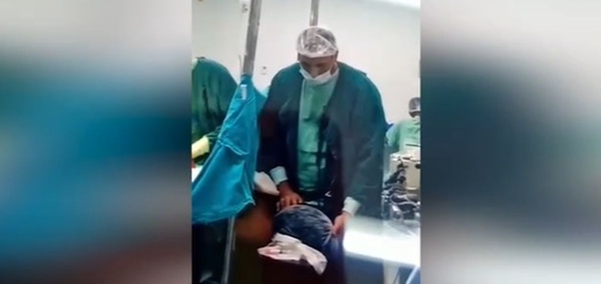 En estas imágenes se puede ver, del lado izquierdo de la sábana, al equipo de cirugía del hospital practicando la cesárea. Mientras tanto, al lado derecho de la sábana, a menos de un metro de distancia de sus colegas, un hombre, que es identificado en el video como el anestesista, se posiciona cerca del rostro de la paciente. En el video se observa que más adelante el anestesiólogo baja la cremallera de su pantalón, retirando su pene, y lo introduce a continuación en la boca de la mujer.