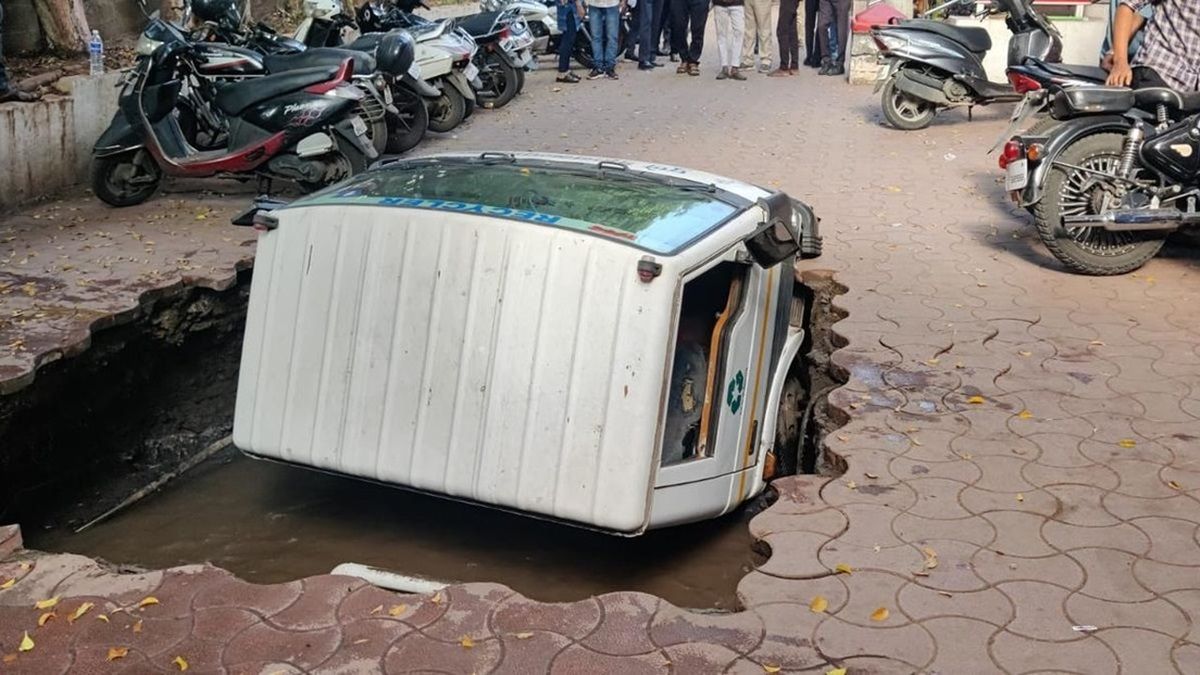 Un camión cisterna cayó en un socavón que se abrió de repente cerca de la oficina de correos de la ciudad india de Pune, en el estado de Maharashtra.