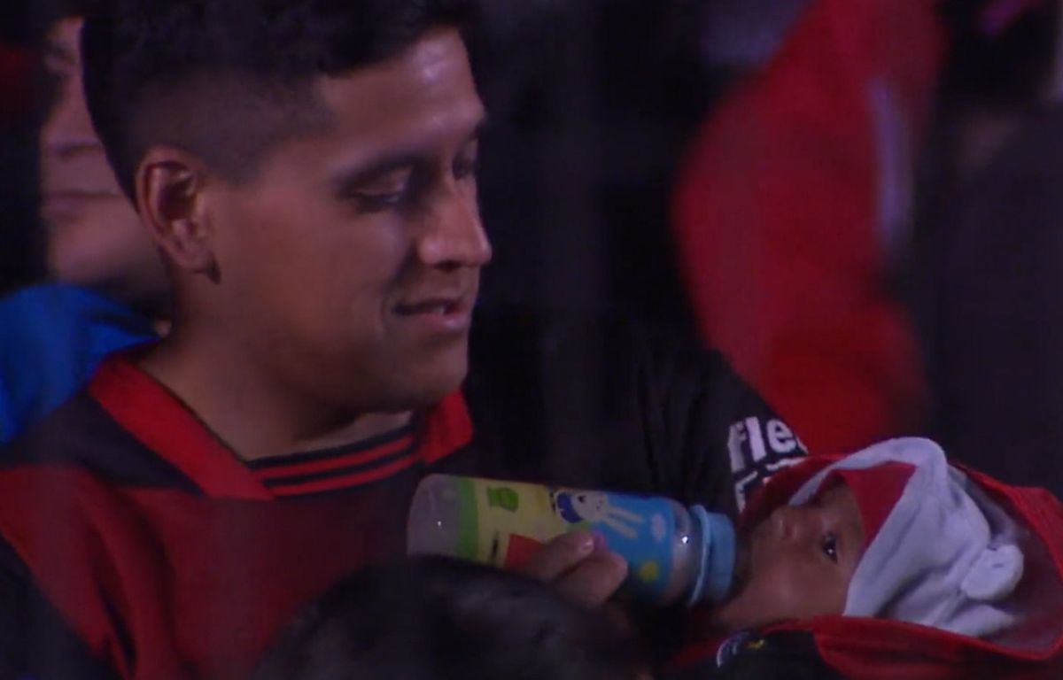 Se trata de un padre con la camiseta de Colón que, en medio de la popular, le dio la mamadera a su pequeño hijo, quien también estaba vestido con los colores del Sabalero. El momento llegó hasta la FIFA y decidieron nominarlo al Premio a la Afición, ese que ya ganó Tula y la hinchada argentina durante el Mundial 2022