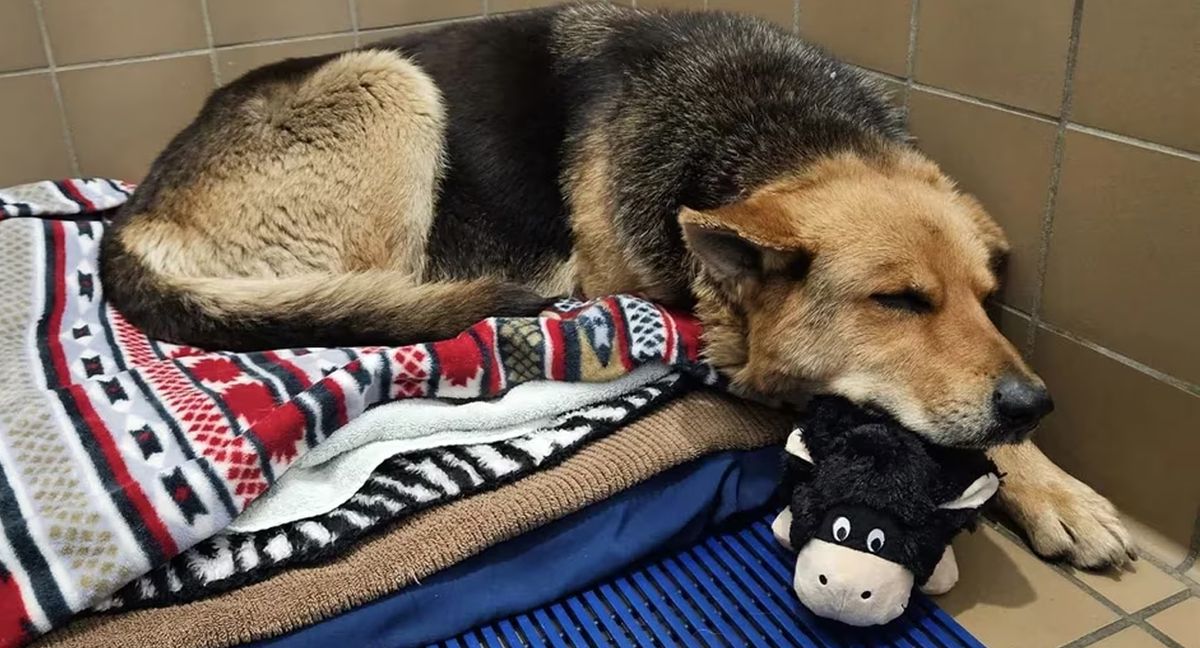 Nikki, una pastor alemán de ojos tristes pero llenos de esperanza, ha capturado los corazones de las personas en las redes sociales y de los trabajadores del albergue que la rescataron de las frías calles de la ciudad. Su historia conmovedora comenzó cuando fue vista deambulando bajo la lluvia, sosteniendo firmemente un objeto muy particular en su hocico.