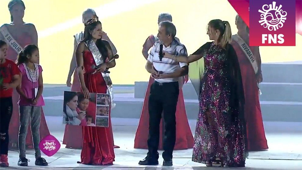 Abril Oyola se despedía en el escenario mayor de la Fiesta Nacional 2018. Vestida de rojo fuego, y con los atributos que minutos más tarde debía entregar, la soberana saliente fue homenajeada por pobladores de la localidad de La Planta.