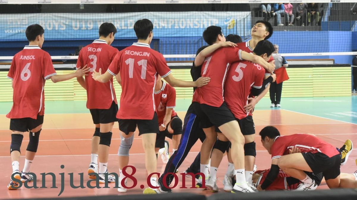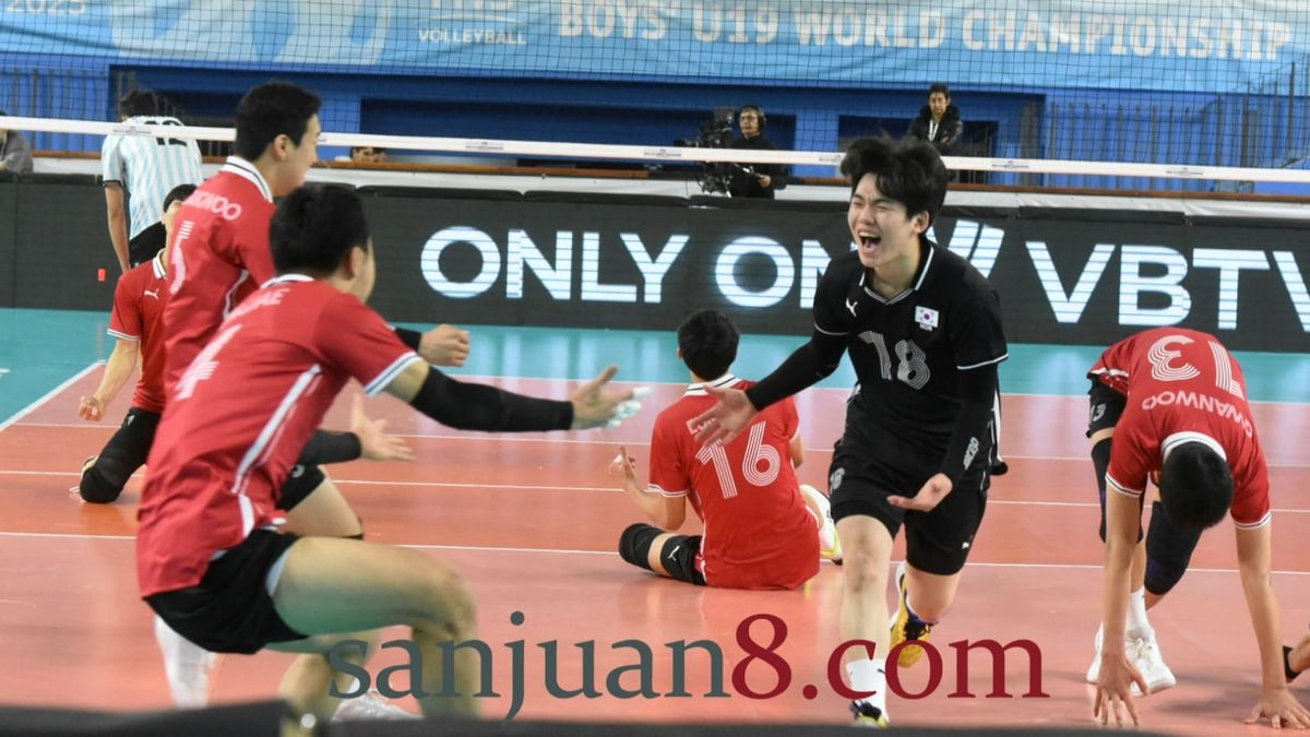 Ante 5200 personas, Argentina perdió frente a Corea por 3 a 2, con parciales de 17-25, 25-21, 25-20, 17-25 y 15-9 y avanzó a los cuartos de final del Mundial U19. Fausto Díaz, máximo anotador con 26 puntos. Este miércoles, desde las 21, la Selección jugará contra Japón en la definición del 9° al 16°.