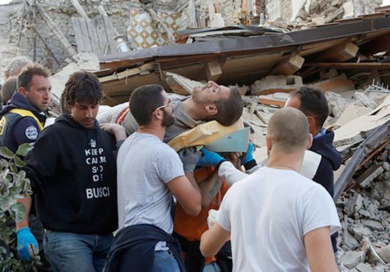 Al seísmo le han seguido varias réplicas, una de ellas de 3,9 grados cerca de Norcia, en la provincia de Perugia; otra de 4,6 próxima a Amatrice y otra de 5,5 grados cerca de Norcia.Las localidades más dañadas por el sismo han sido Amatrice y Accumoli, en la provincia de Rieti, y Pescara del Tronto en la provincia de Ascoli, a la que pertenece la pedanía de Arquata, donde se han producido una decena de víctimas.Los pueblos de Amatrice y Accumoli han quedado fuertemente dañados con cientos de casas completamente destrozadas, tanto que sus alcaldes explicaron que la mitad de estas localidades "ya no existen".El alcalde de Accumoli, Stefano Petrucci, explicó que por el momento en su localidad se han recuperado los cuerpos sin vida de tres personas y hay 8 heridos graves, pero que la cifra se incrementará ya que muchas personas están bajo los escombros, como un matrimonio con sus dos hijos pequeños que dan señales de vida desde hace horas.Los equipos de Protección Civil y el Ejercito italianos trabajan en las labores de socorro en Amatrice para encontrar posibles supervivientes, a los que se han sumado miembros del Cuerpo Forestal, así como muchos vecinos.También decenas de personas están siendo rescatando vivas bajo los escombros varias horas después de que se produjera un terremoto a las 03.36 hora local (01.36 GMT) en el centro de Italia.Los medios de comunicación han informado de como poco a poco eran rescatadas personas vivas de los escombros, como el caso de un hombre de 65 años en Accumoli, encontrado bajo una casa que se hundió totalmente.En Pescara del Tronto han sido rescatados dos niños de 4 y 7 años a quienes su abuela, con la que estaban en el momento del seísmo, hizo meterse debajo de la cama en cuanto empezó a sentir el temblor, relataron esos mismos medios.Los heridos del terremoto están siendo trasladados a los hospitales cercanos como el de la ciudad de Rieti o L'Aquila, donde se produjo el devastador terremoto de 2009, ya que los centros médicos de la zona han resultado dañados.El personal del hospital de Amatrice, que quedó inaccesible por el sismo, atiende a los heridos que van llegando en una explanada.En los hospitales de Roma han sido ingresados seis heridos, dos de ellos graves, que fueron trasladados con helicópteros desde las localidades afectadas.