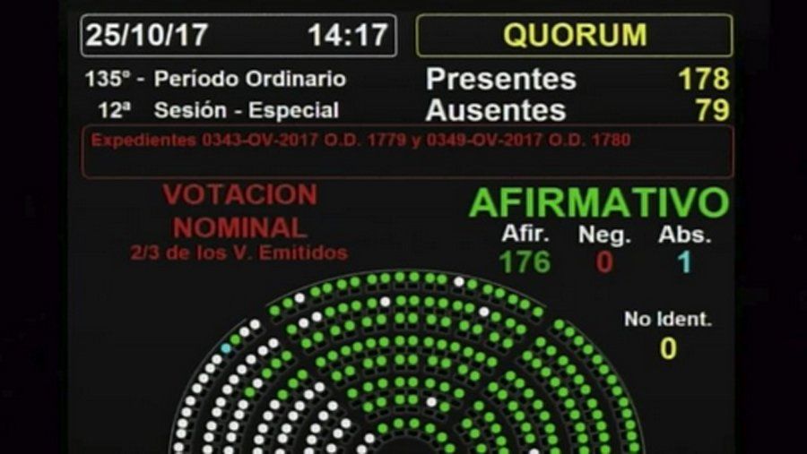 La votación final fue 176 votos afirmativos, 1 abstención y cero negativos. A raíz de esto el diputado Julio De Vido se presentó en Comodoro Py donde quedó detenido por malversación de fondos nacionales destinados a la mina de carbón de Río Turbio.