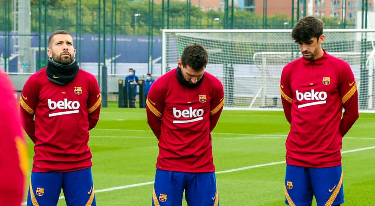 En ese contexto, Messi pasó al frente del plantel junto al entrenador neerlandés Ronald Koeman en el campo de entrenamiento Tito Vilanoba y los restantes 23 jugadores del plantel formaron una suerte de círculo, para luego guardar un minuto de silencio.