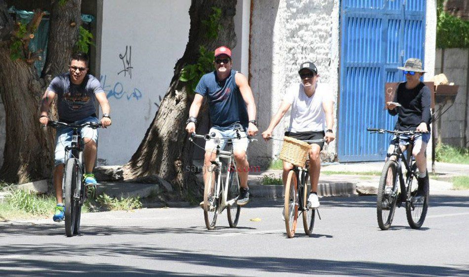 Carlos Vives aprovechó la siesta y salió a recorrer la ciudad en bicicleta. Más de uno se sorprendió cuando lo vio rodando por las calles sanjuaninas.