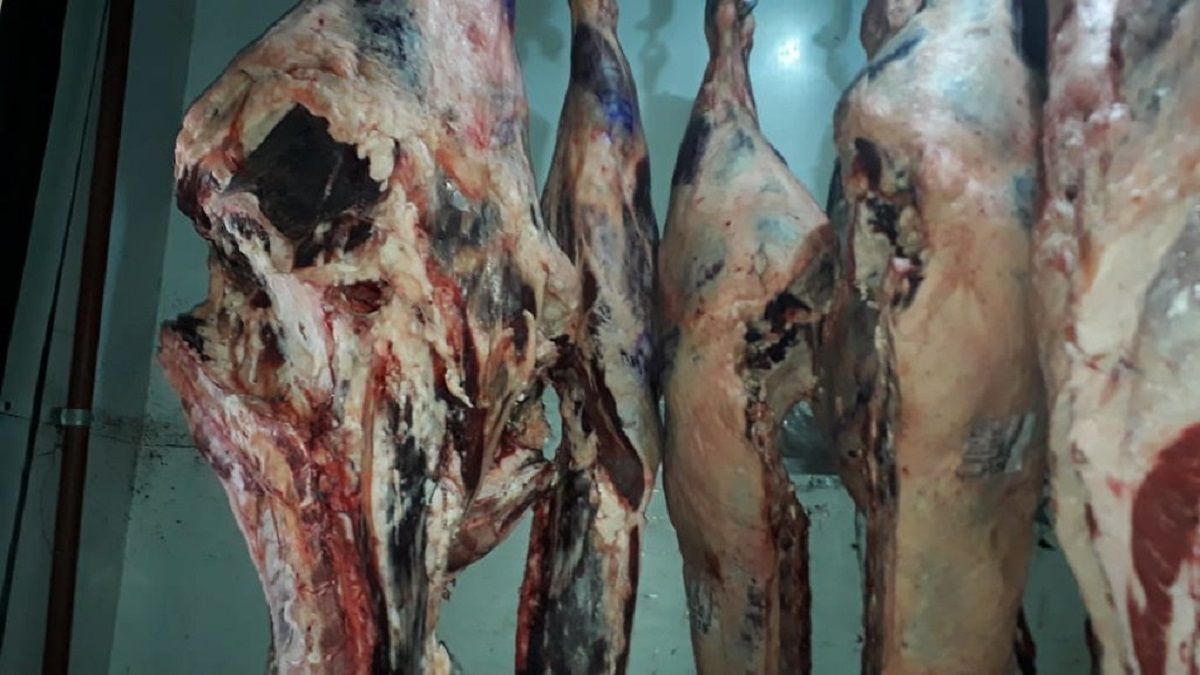 Ese camión llevaba la carne sobre el piso, algo que constituye una infracción. Luego, al llegar a un domicilio de Caucete, se descubrió una cámara frigorífica sin habilitación que tenía carne de cerdo y bovina en su interior.