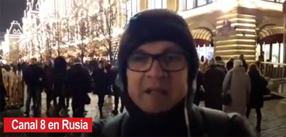 Claudio Bonomo y un equipo de Canal 8 visitaron los principales puntos y destacaron que en esta época esta plaza es visitada por miles de familias. Durante la noche del sábado la temperatura que se registró fue de -2°C y a pesar del frío extremo el lugar estaba invadido por rusos y turistas de todo el mundo que patinaban en una pista y los más pequeños jugaban en la nieve.