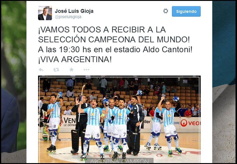El gobernador José Luis Gioja, uso las redes sociales para invitar a los sanjuaninos a recibir a la selección de Hcokey pentacampeona en el estadio abierto Aldo Cantoni.