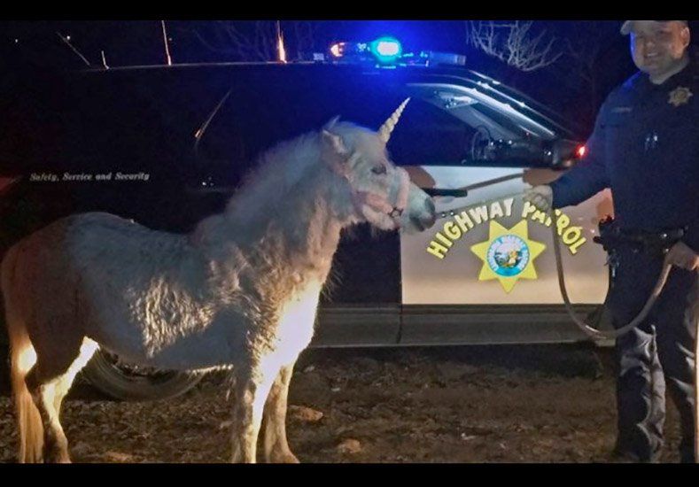 Una patrulla de caminos de California recibió varios informes insólitos pero coincidentes: un unicornio diminuto se paseaba por una carretera.