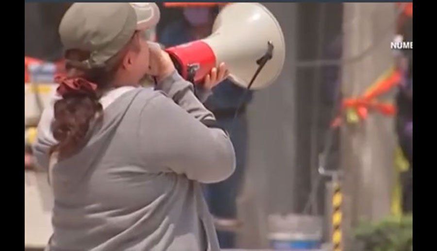 En la imágenes se ve cómo Karina Gaona, utilizando un megáfono, le suplica a su hermano que se aferre a la vida.