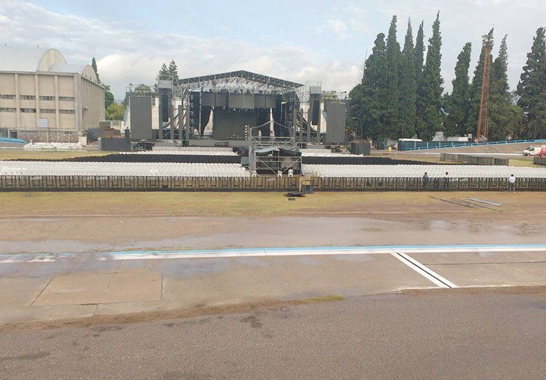 Luego de la intensa lluvia que dejó inundado el predio donde se desarrollará hoy la Noche Soberana, realizaron trabajos a contra reloj para lograr que el lugar quede en óptimas condiciones. Por esta causa, se hubo labores de filtración de agua y la colocación de un “piso flotante” para que la circulación de los invitados sea normal.