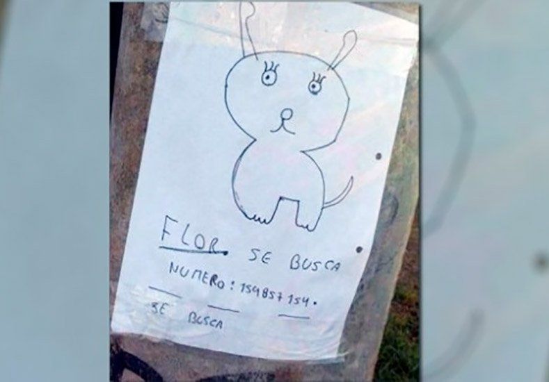 Dos nenes de Río Cuarto que perdieron a su perrita como no tenían ninguna foto de ella, la dibujaron y colgaron letreros con el número de teléfono de una vecina.
