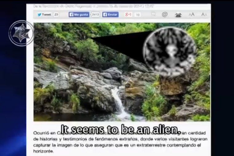 La entidad que se observa, está en medio de unos árboles cercanos a una cascada que desemboca en una piscina natural del río Calabalumba. La criatura tiene la típica forma de un alien como los que se muestra en los medios de comunicación: cabeza grande, ojos negros y ovalados, además de poseer un cuerpo pequeño y delgado. La foto, tomada por turistas, se difundió a través de las redes sociales y se viralizó rápidamente. No obstante se desconoce si hubo o no un trabajo de edición.