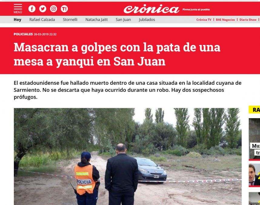 Luego de que se conociera sobre el asesinato de un norteamericano en San Juan, los medios nacionales tomaron la noticia como "un misterio", por las características del caso que revistieron alevosía.
