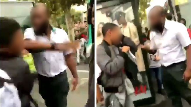 El video viral comienza en ese momento. Muestra a otros adolescentes riendo hasta que el conductor del autobús baja de su vehículo y le da una bofetada. El chico se queda en estado de shock mientras los que lo rodean gritan. Luego de la bofetada, el chofer le dice: "¿Cuántos años crees que tengo?". El video, publicado inicialmente en Snapchat, ha visto casi 1,2 millones de veces en Le Parisien.