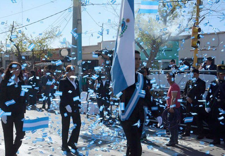 Decenas de agrupaciones e instituciones educativas desfilaron durante la mañana del lunes por las calles de Pocito para rendirle homenaje al Padre de la Patria, General Don José de San Martín.