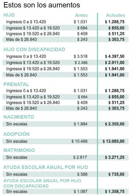 El incremento beneficiará a las 18.500 asignaciones que se pagan actualmente en la provincia y que incluyen los ítems abonados por hijo, hijo con discapacidad, prenatal, nacimiento, adopción, matrimonio y las ayudas escolares.