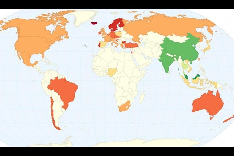 Los 10 países donde, según el mapa, la iniciación sexual es más rápida:
