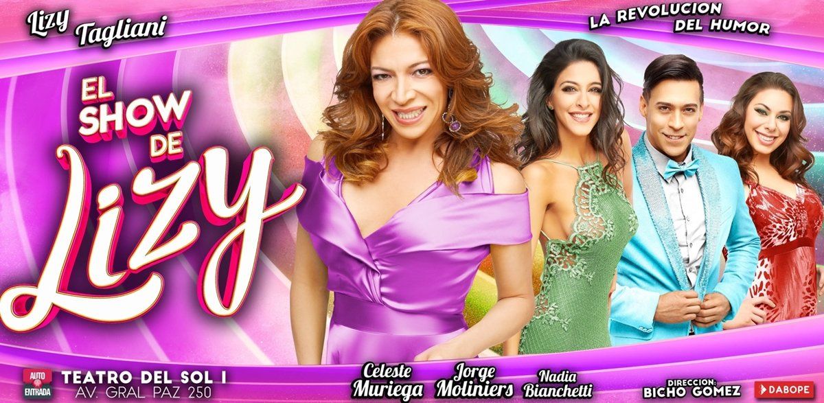 El Show de Lizy ya tiene su marquesina y se prepara con todo para debutar en Carlos Paz. Lizy Taglini, divertida e histriónica, desplegara todo su potencial, y el humor que la caracteriza, sobre el escenario y estará acompañada por Celeste Muriega, Jorgito Moliniers y Nadia Biachetti, cantante cordobesa (finalista de Soñando por cantar) en este gran espectáculo que tiene previsto su debut el 18 de diciembre en el teatro del Sol 1 de la villa serrana