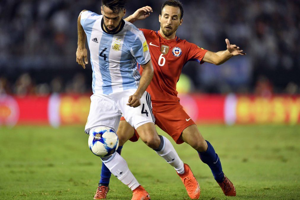 Emmanuel Mas sólo pudo completar la primera parte en el duelo de Argentina ante Chile. El sanjuanino recibió un duro golpe de Romero que le impidió seguir en la cancha.