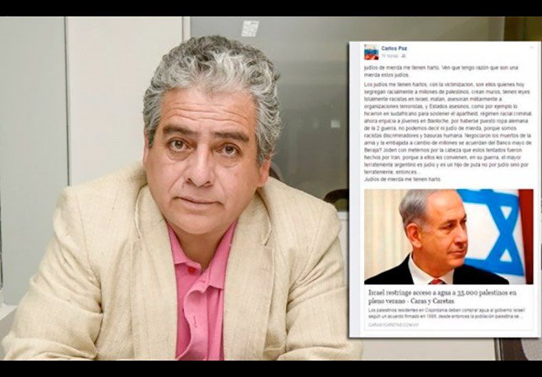 El defensor del pueblo del municipio salteño de Cerrillos, Carlos Paz, quedó en medio de la polémica luego de que en su cuenta de Facebook apareciera una publicación discriminatoria y racista que apunta contra los judíos.