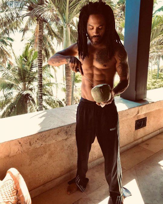 Este martes Lenny Kravitz sorprendió a sus más de tres millones y medio de seguidores de Instagram con una foto con el torso desnudo. La imagen no pasó inadvertida en las redes sociales donde entre halagos y memes su nombre se volvió tendencia. El músico de 56 años se mostró casual intentando abrir un coco a la “1:23 PM”, como tituló la fotografía. Allí aparece luciendo un pantalón deportivo, descalzo y en cuero mostrando los abdominales bien marcados.