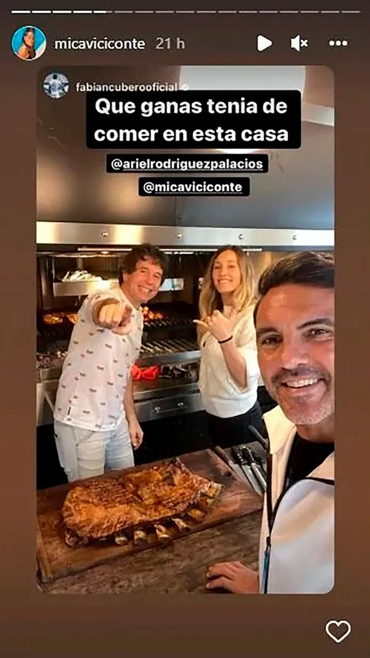“Que ganas tenía de comer en esta casa”, escribió el exfutbolista de Vélez, en la historia a Instagram que subió, mostrando el asado que hizo el cocinero para la familia de su compañera.