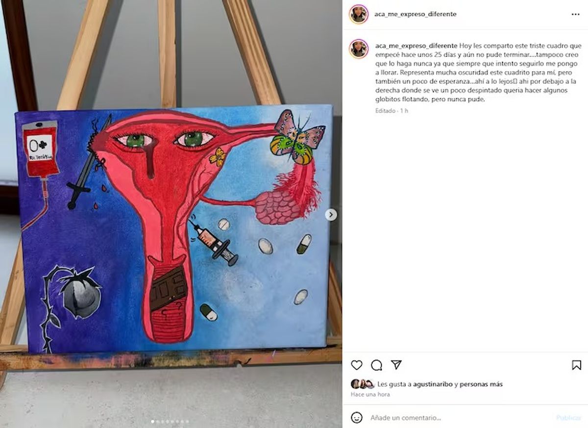A mes de haber atravesado una delicada situación de salud debido a un segundo embarazo ectópico, María Becerra captó la atención de sus seguidores en redes sociales al compartir una conmovedora pintura de su propia creación. La misma fue compartida en su cuenta alternativa llamada @aca_me_expreso_diferente en Instagram.