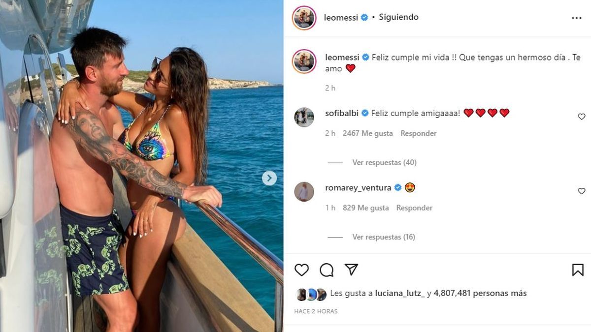 El romántico mensaje del capitán de la selección argentina se llenó de inmediato de millones de likes. Messi y Antonella son padres de los pequeños Mateo, Ciro y Thiago.