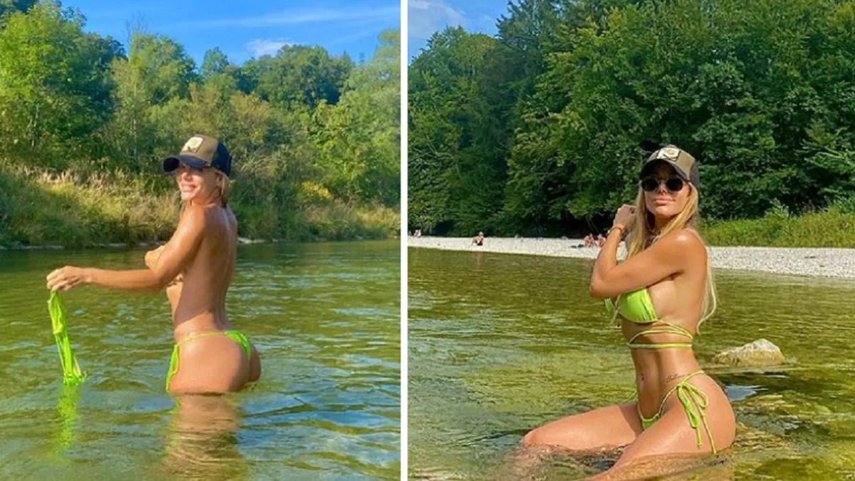 Tras revelar el origen de su nombre vinculado a otra famosa, Evangelina Anderson compartió una secuencia de fotos y video de su topless en Munich, Alemania, con una sorpresa en el final.