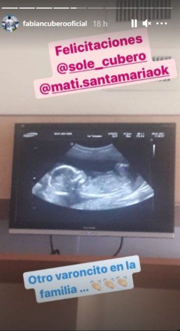 El ex de Nicole Neumann anunció que su hermana Soledad Cubero y su marido están en la dulce espera de un niño: "Otro varoncito en la familia", expresó junto a la foto de la ecografía del bebé.
