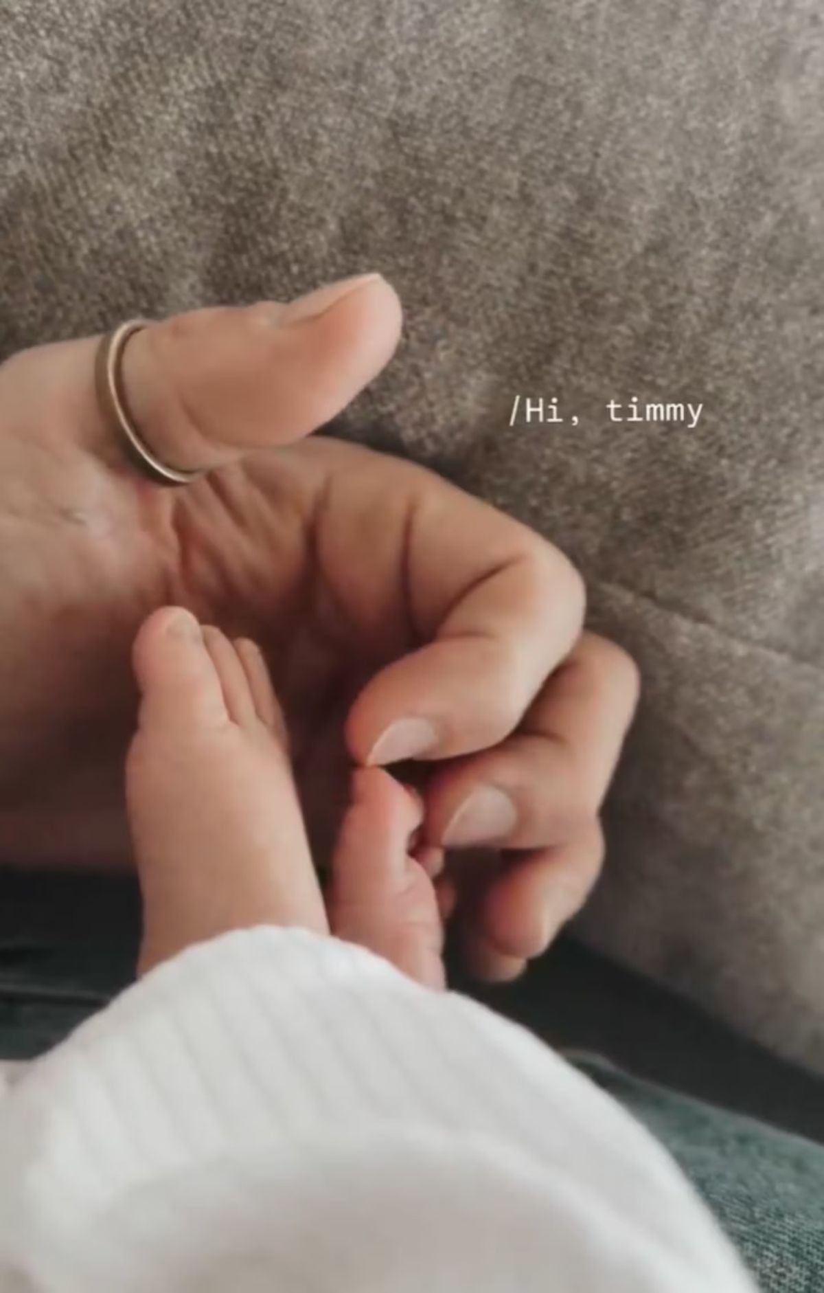 A través de una historia de Instagram, Sebastián publicó un tierno video en el que se ve su mano sosteniendo los pies del bebé. “Hi, Timmy” (hola, Timmy), escribió él en un gesto cargado de emoción.