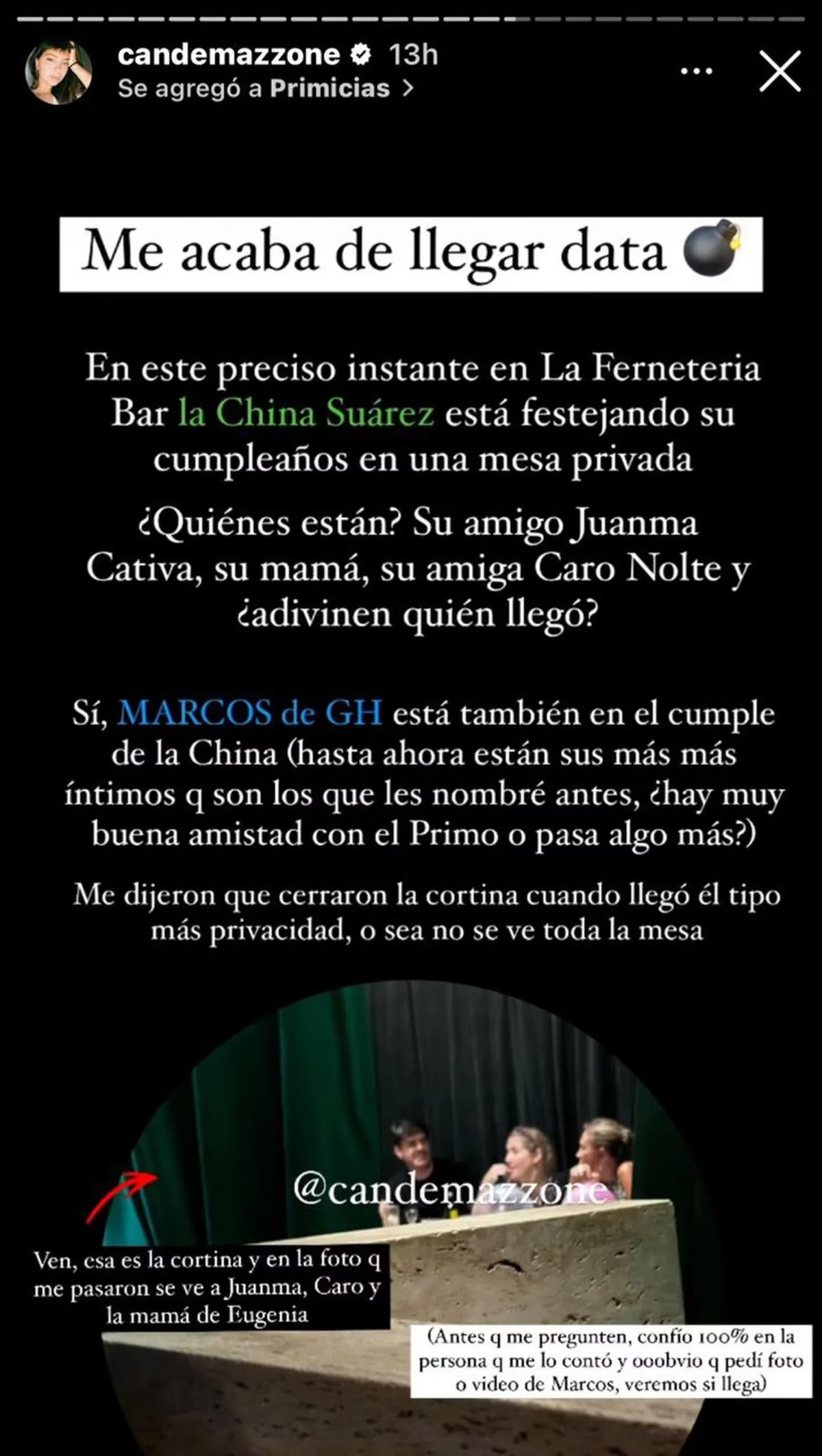 La China Suárez arrancó su cumpleaños con Marcos Ginocchio