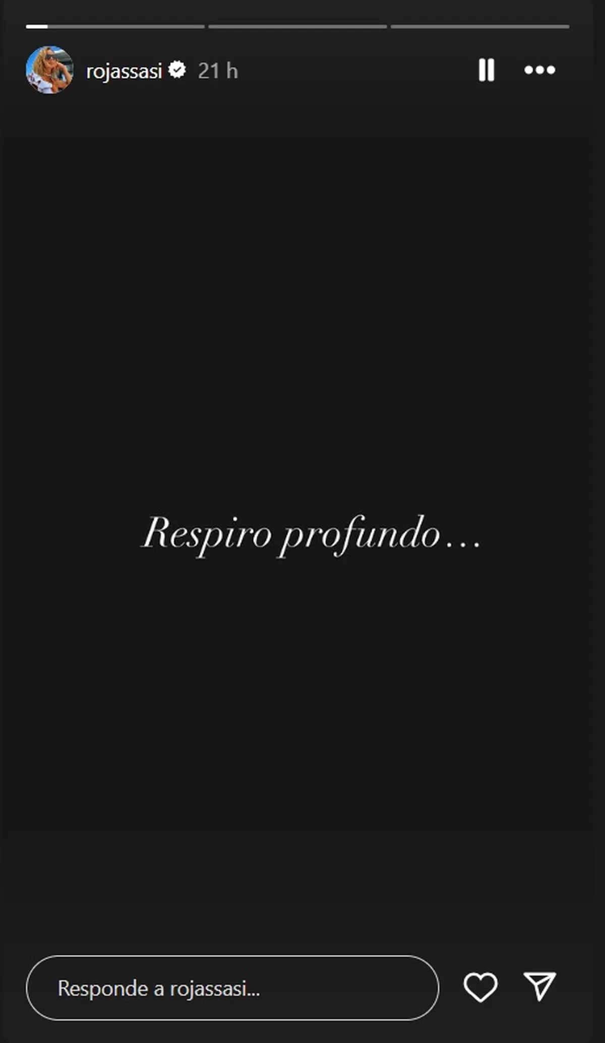 "Respiro profundo...", lanzó picante y conteniéndose la actriz en sus historias de Instagram sin hacer mención al tema en particular pero con un claro destinatario que no reveló.