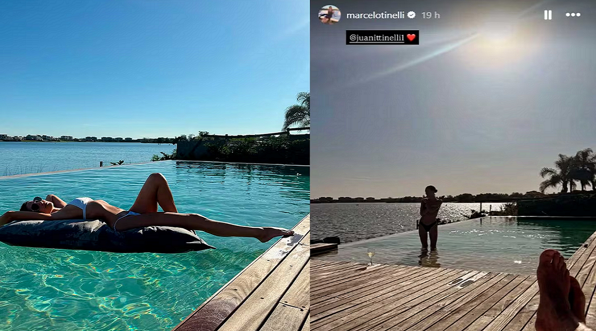 En las fotos que mostró Marcelo Tinelli en su cuenta de Instagram se pueden ver a los dos disfrutando del sector de la piscina un día a puro sol y también cenando juntos milanesas.