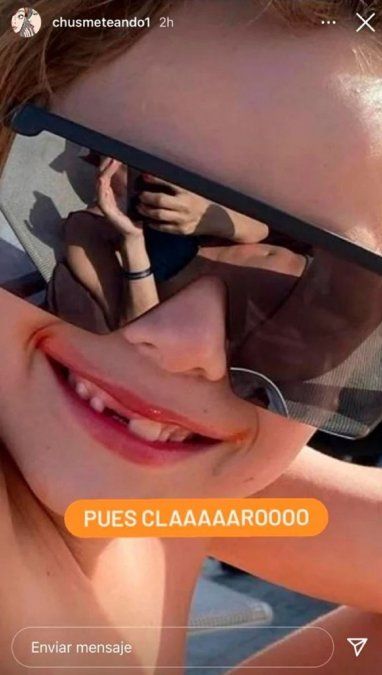 En uno de sus últimas historias en Instagram, la modelo retrató uno de sus hijos en una reposera charlando con ella.