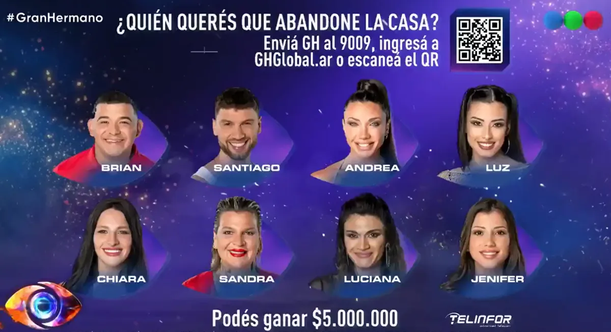 Por lo tanto, los nominados de esta semana son Brian, Santiago, Andrea, Luz, Chiara, Sandra, Luciana y Jenifer.