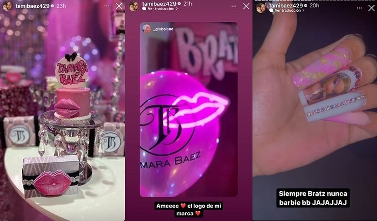 "Siempre Bratz nunca Barbie" aseguró pícara al mostrar sus uñas también tematizadas, al igual que la mesa dulce y la gigantografía de su ídola. En tanto, en lo referente a su look, la mamá de Jamaica eligió un top de encaje combinado con un pantalón deportivo negro de cintura alta y zapatillas al tono. Y por supuesto, el pelo larguísimo y suelto, al igual que su muñeca inspiradora.