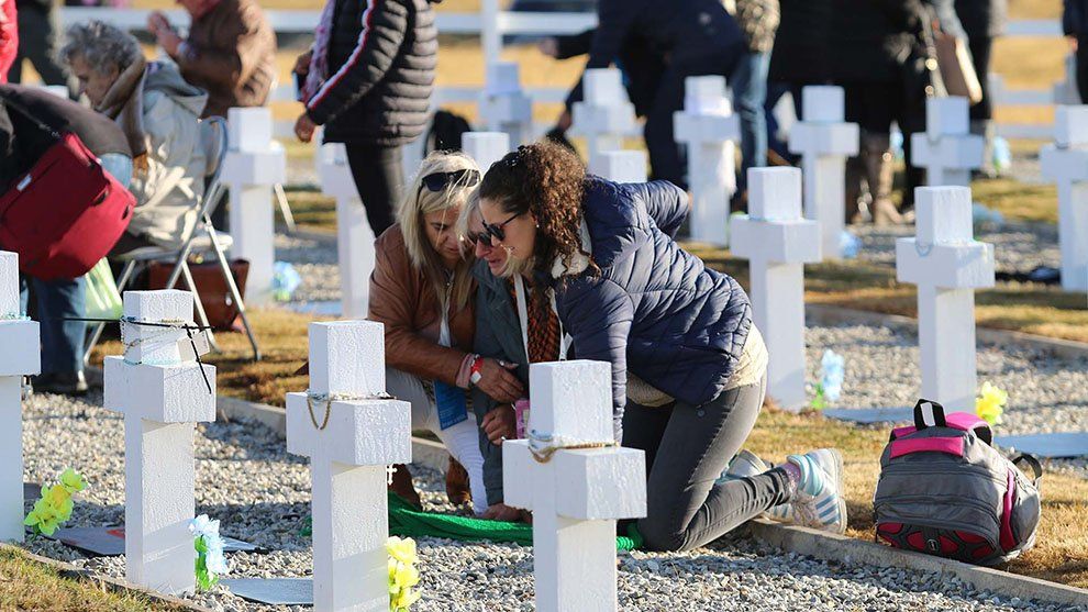 Los familiares de los combatientes de Malvinas enterrados en el cementerio de Darwin bajo la leyenda "Soldado argentino sólo conocido por Dios" fueron a llorar y rendir homenaje frente a las tumbas identificadas de sus seres queridos.