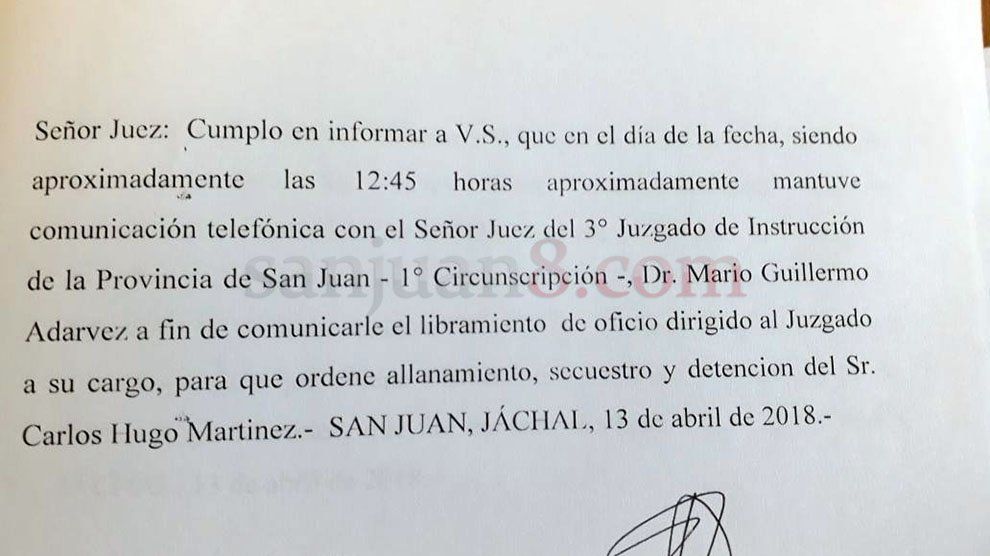 Al mediodía de este viernes, el juez Pablo Oritja -a cargo de la Segunda Circunscripción Judicial de San Juan, que cubre Jáchal- envió un pedido al titular del Tercero de Instrucción, Guillermo Adarvez, para que detenga al ginecólogo Carlos Hugo Martínez. En medio del escándalo por las siete acusaciones de abuso sexual en su contra, los efectivos de la Policía de San Juan buscan dar con el paradero del implicado.