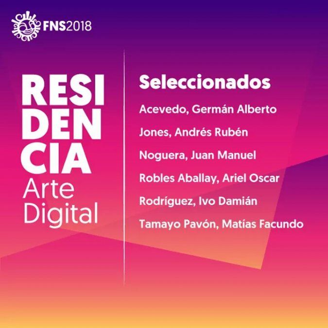 Entre más de 40 inscriptos, estos son los 6 seleccionados para participar de la Residencia de Arte Digital de la Fiesta Nacional del Sol 2018: