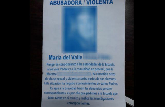 La mujer, de la cual se resguarda la identidad y el lugar donde trabaja, días atrás se encontró con una serie de panfletos con su cara en donde la acusaban de abuso sexual contra sus alumnos. Este acto generó que la docente, quien ya cuenta con varias denuncias sume una más en contra del padre de sus hijos, quien es el principal sospechoso de estos actos.