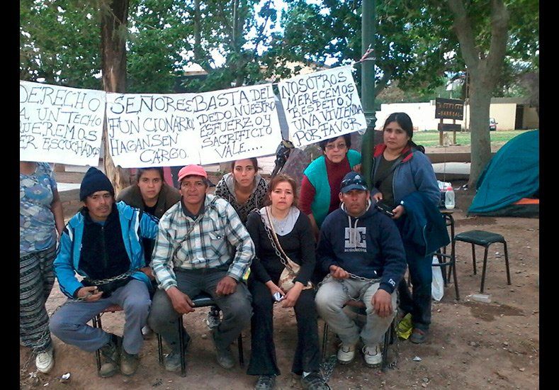 Diez son las familias que reclaman por viviendas en Calingasta. Se hubicaron en carpas en la puerta del municipio y manifiestan su malestar por las promesas que Robert Garcés les hizo en campaña.