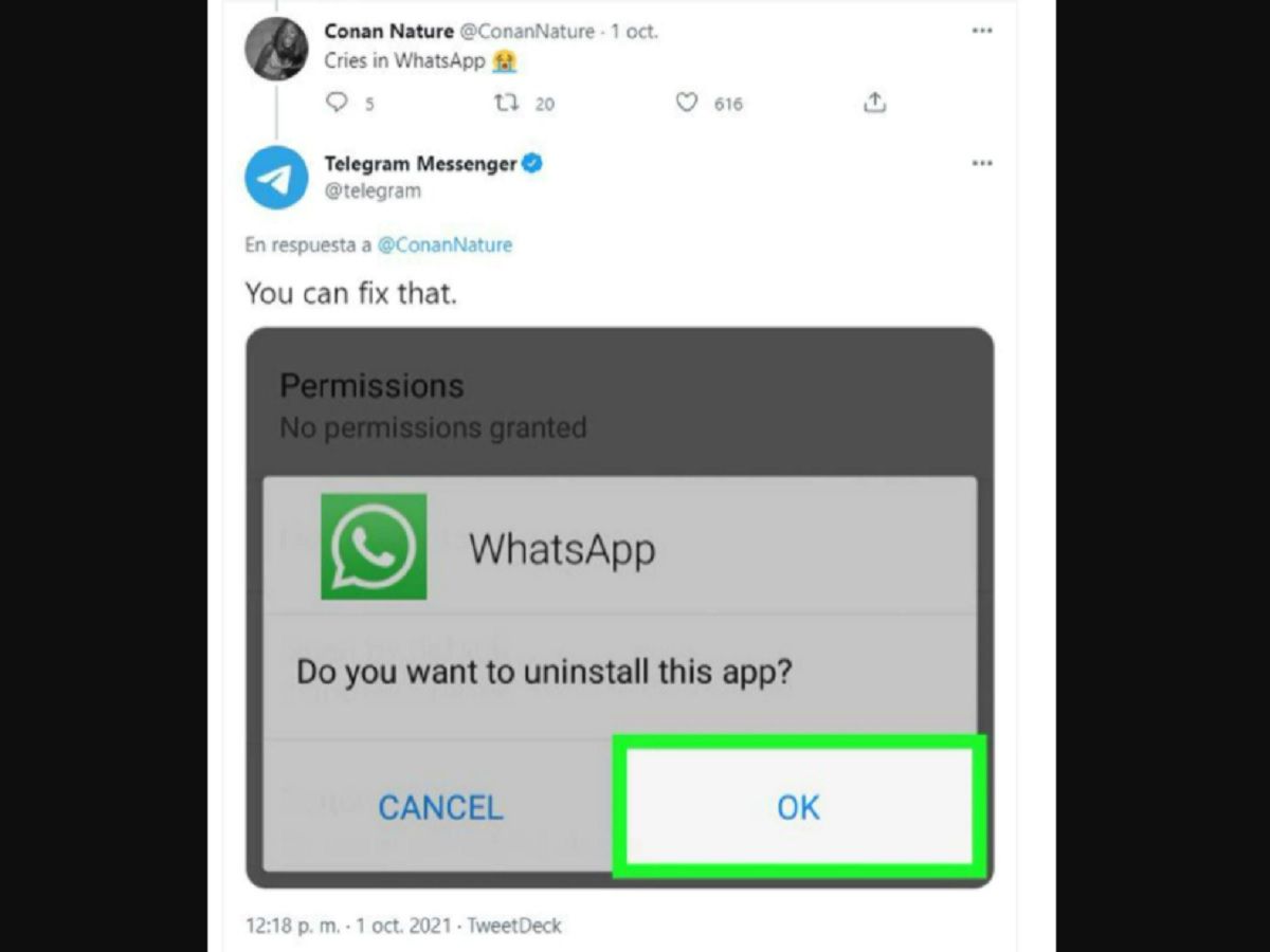 Si bien no publicaron ninguna comunicación oficial, la cuenta de Instagram contestó a un usuario que los problemas se debían a la cantidad de personas que se estaban registrando en el mensajero por la caída de WhatsApp, y que por eso Telegram podía funcionar un poco lento.